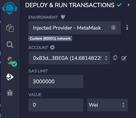 4. In Remix under the Deploy & Run Transactions tab, select Injected Provider - MetaMask in the Environment list. Remix will use the MetaMask wallet to communicate with Sepolia.